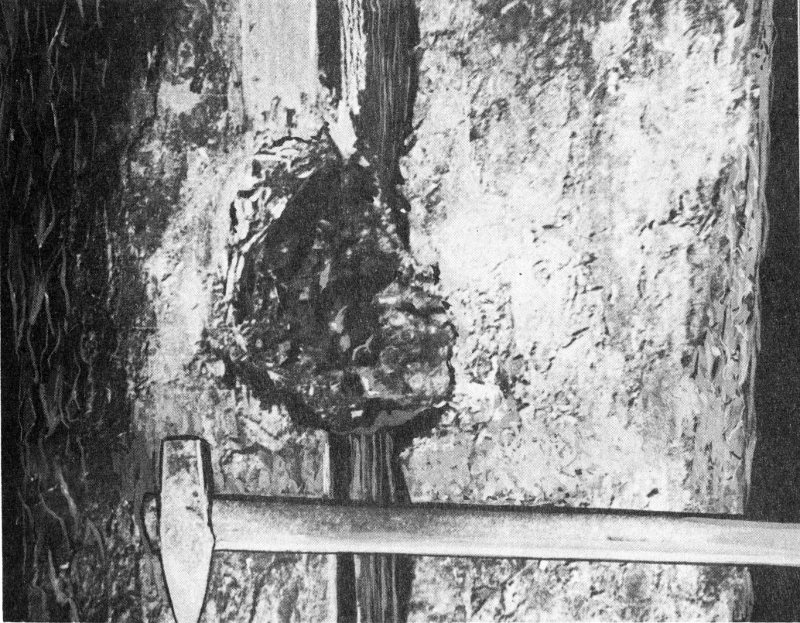 Scientists and farmers soon found many other fragments during systematic searches of the rolling farm and pasture lands. The fourteen-year-old boy who had been walking with his mother at the time of the fall discovered a 130-pound fragment of the meteorite in a pasture that had already been carefully searched by grown-up meteorite hunters! This find was one of the two largest fragments recovered from the entire fall. The landing place of this large piece was marked only by a small hole in the sod, but, on prodding into this hole, the boy struck something rather solid. He ran at once to tell the lady who owned the pastureland, and together they dug out the fine meteorite.
