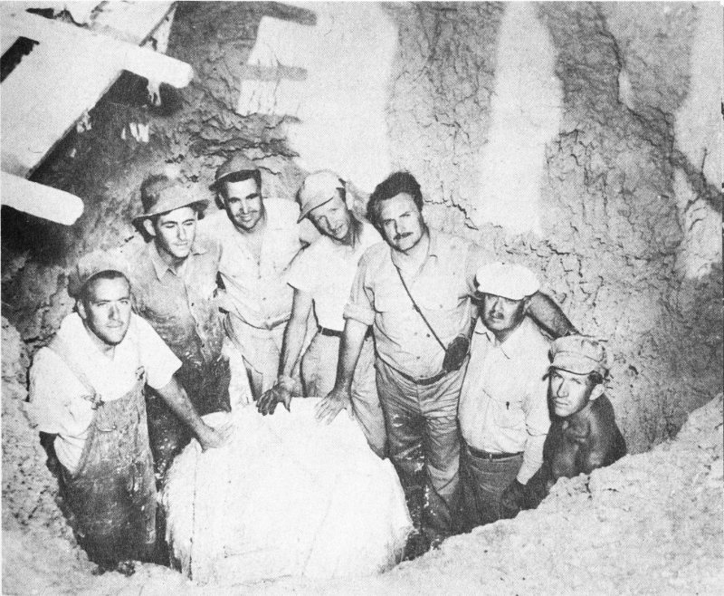 COURTESY OF E. L. KRINOV Workmen excavating one of the large craters formed by the impact of the Ussuri meteorites.
