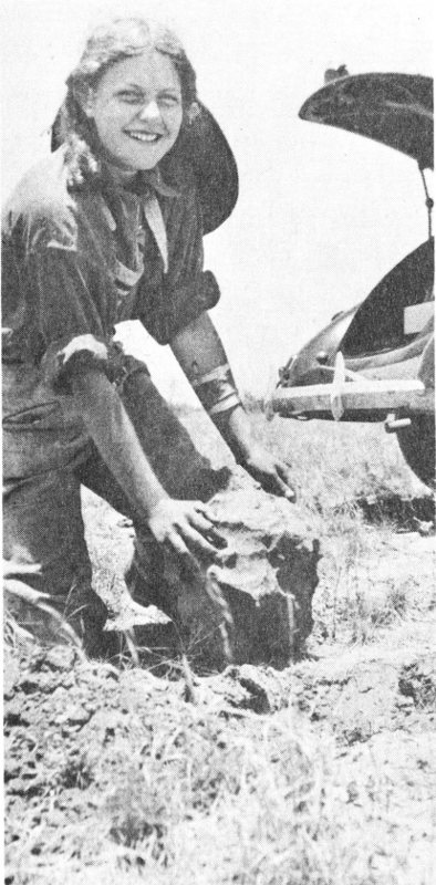 The Furnas County, Nebraska, stony meteorite in place at the bottom of its 10-foot “penetration funnel.”
