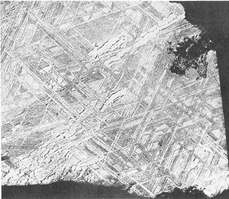 The discovery of the beautiful and significant Widmanstätten patterns characteristic of the majority of the irons, and the less spectacular but equally important lines named for J. G. Neumann, the German meteoriticist who discovered them, in 1848, in the Braunau meteorite.