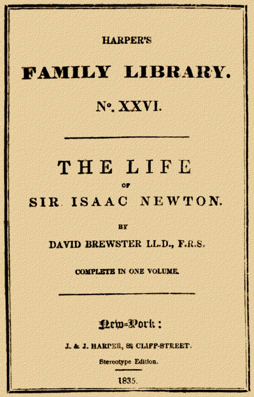 As this is the only Life of Sir Isaac Newton on any considerable scale that has yet appeared, I have experienced great difficulty in preparing it for the public. The materials collected by preceding biographers were extremely scanty; the particulars of his early life, and even the historical details of his discoveries, have been less perfectly preserved than those of his illustrious predecessors; and it is not creditable to his disciples that they have allowed a whole century to elapse without any suitable record of the life and labours of a master who united every claim to their affection and gratitude.