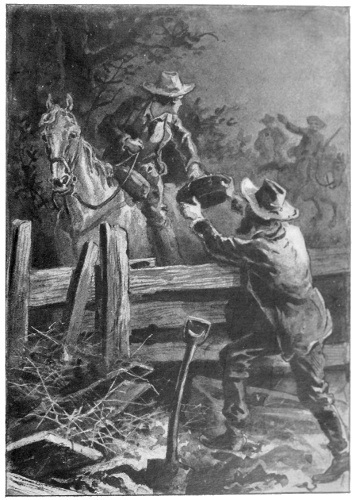 “I tell you we gave it to them down there in the woods,” said Dawson, as he rode along behind the breastworks until he found Leon and Tom. “You ought to have been along. I reckon I have paid the rebels for burning our house. I lifted one officer out of his saddle as clean as a whistle.”