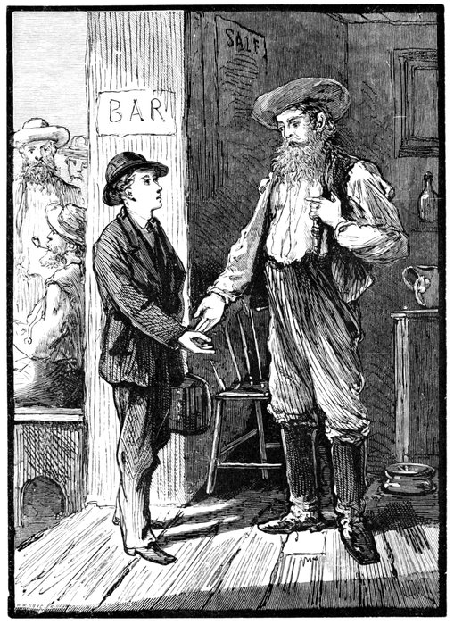 Being satisfied now that he could appear on the streets without attracting any but admiring glances, Ned went down to the office. The clerk was not there, and while the boy stood leaning against the counter, waiting for him to come in so that he could give him his key, he heard a voice behind him—a familiar voice, that made the cold chills creep all over him. He knew who the owner of the voice was, but some strange fascination compelled him to turn his head and look at him over his shoulder. There 344were two men standing in front of the counter with the register before them. One held a pen in his hand, and was on the point of writing his name, when another name above the first vacant line attracted his attention.
