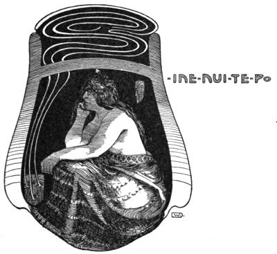 Down along the narrow ridge to the tideway they move, until they reach the ghostly leaping-place, tapu to the manes of the innumerable multitude of dead. Here grew a venerable pohutukawa tree, gnarled and knotty, with great ropy roots trailing to the tide. By these roots the spirits dropped to the sea, loosing their last grip of Ao-tea-roa to the dirge of the screaming sea-birds and the moaning waves. Below, the tossing sea-kelp opens a moment to receive the wairua, and then the dark waters close over them for ever. This is the Tatau-o-te-Po, the Door of Death, which is the entrance to the gloomy Kingdom of Miru, the Goddess of Eternal Night.