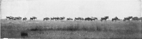 And as if the Masai, resting probably for centuries under these heaps of stone, had left their herds to me, once more there surges around me this sea of animals. Near at hand they are sharply defined against the ground, 36 but farther off in the glittering light they grow indefinite. How the whole flood of life contrasts with the grim volcanic barrenness of the landscape!