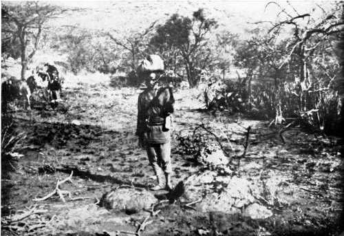 The smoke puffs appear at markedly regular intervals and as quickly disappear. I cannot understand it. For a long time I keep my attention anxiously fixed on these proceedings, all the while hurrying towards this remarkable apparition. At last my field-glasses enable me to descry a man, who from time to time drops on one knee to take aim. 37