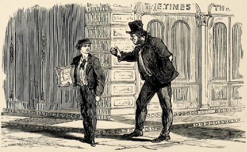 On the sidewalk in front of the "Times" office, facing Printing-House Square, stood a boy of fifteen, with a pile of morning papers under his arm.