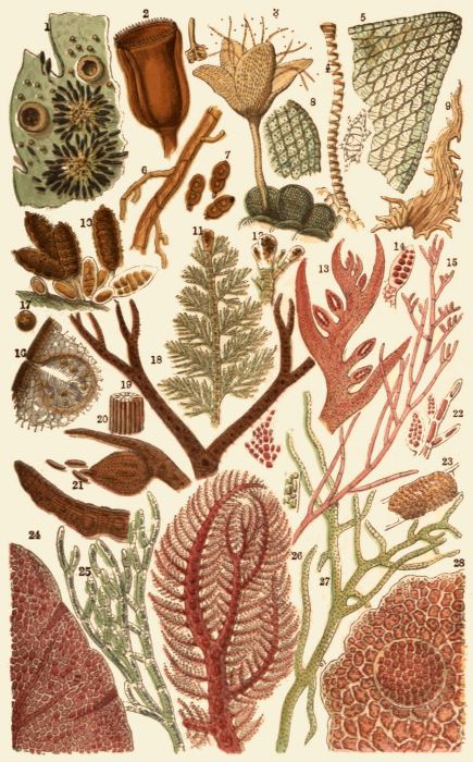 Algæ and their Growth—Desmidiaceæ, where found—Diatoms, their Flinty Deposit—Volvox—Mould, Blight, and Mildew—Mosses and Ferns—Mare’s-Tail and the Spores—Common Sea-weeds and their Growth