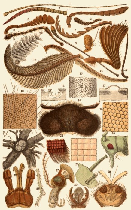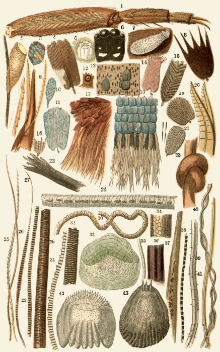 Antennæ, their Structure and Use—Eyes, Compound and Simple—Breathing Organs—Jaws and their Appendages—Legs, Feet, and Suckers—Digestive Organs—Wings, Scales, and Hairs—Eggs of Insects—Hair, Wool, Linen, Silk, and Cotton—Scales of Fish—Feathers—Skin and its Structure—Epithelium—Nails, Bone, and Teeth—Blood Corpuscles and Circulation—Elastic Tissues—Muscle and Nerve