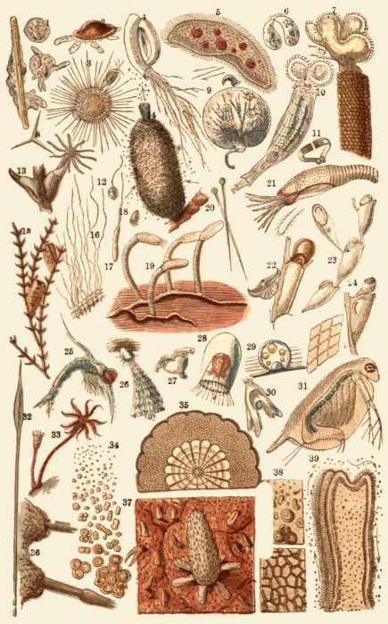 Marine Life—Sponges—Infusoria—Foraminifera—Radiolaria—Hydroid Zoophytes—Polyzoa—Worms—Lingual Ribbons and Gills of Mollusca— Star-Fishes and Sea-Urchins—Cuttle-Fish—Corallines—Miscellaneous Objects