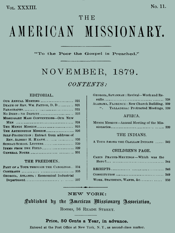 Title: The American Missionary — Volume 33, No. 11, November, 1879