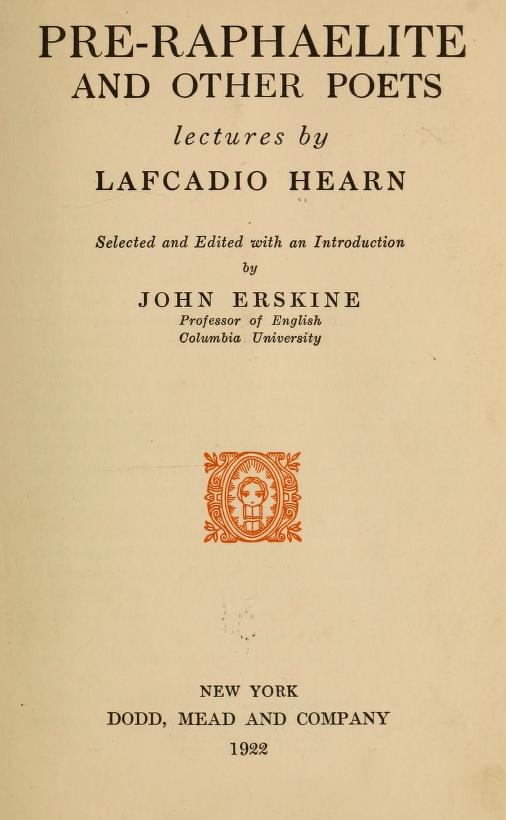 This volume is issued in response to a demand from students of literature for the best lectures of Lafcadio Hearn in a more accessible form than the library editions in which they first appeared. It seemed advisable to bring together these chapters from "Interpretations of Literature," 1915, "Appreciations of Poetry," 1916, and "Life and Literature," 1917, in order to provide under one cover—and let us hope, in spite of the cost of printing, at a lower price—a fair example of Hearn's critical felicity in the field of modern poetry, where perhaps he was at his best. The choice of lectures has been governed largely by the manuscripts available; the studies of Rossetti, Swinburne, Browning, Morris, and Meredith are among the longest and clearest of the texts; the lecture on Robert Bridges is one of those kindling analyses which Hearn gave only when he was most happy, and only of the writers he loved; the brief notes on Rossetti's prose and on the "Shaving of Shagpat" were added as naturally complementing the verse-writings of their respective authors; and the account of Buchanan's ballad not only helps to round out a portrait of the modern muse, but it also illustrates Hearn's keen recognition of a great note in minor poets, and his ability to make us feel the greatness.