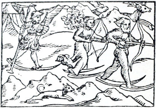 Fig. 2.—Skrid-Finner hunting (Olaus Magnus, ca. 1550).