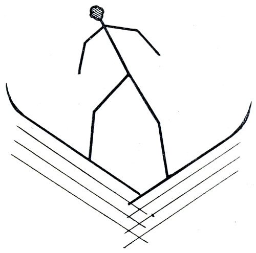 It will thus be seen that ski were extensively used in olden 6 times by the Scandinavians as well as others. They also found their way from Norway to Iceland and Greenland. Of ski there are many types. The skridsko (sliding shoes), or ski of the Lapps, appear, if one is to judge from old illustrations from the sixteenth century (Figs. 2 and 3), to have been veritable shoes, the feet being placed in a hole made for the purpose at the 7 heel of the ski. They are thus depicted as elongated (some 3ft. long) sabots. There is, however, no reason for assuming these sabot skis to have been the original form, for they were, at best, but a hybrid type of ingenious construction, possibly only used by the inhabitants of certain districts. The true Lapps’ ski, on the other hand, were comparatively short and broad, attached to the feet by toe straps and thongs, and covered with the skins of reindeer calves for the purpose of letting them glide easily without accumulating snow on the soles, of keeping the wood from splitting or fraying, and because, when thus covered, it was easier to ascend the slopes of the hills, the hairs which lay fore and aft, checking the tendency to slide backwards.