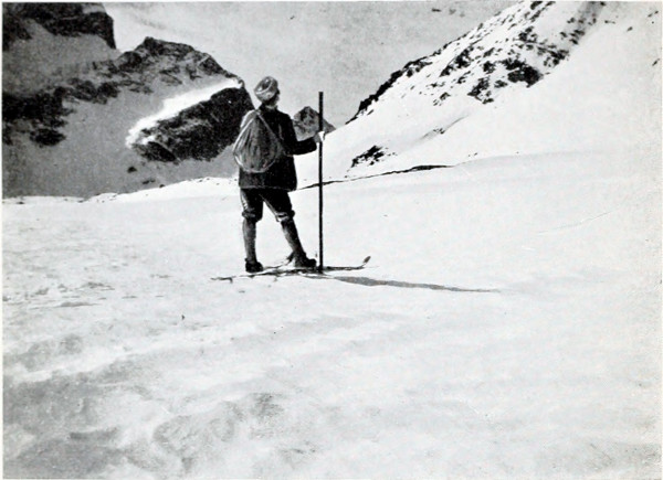 9 The ski which are suitable for ordinary excursions on undulating ground are not necessarily equally useful for long mountain climbs. In the one case ski-running pure and simple is the object in view, in the other the ski are merely a means to an end—the ascent of some difficult summit or pass. Some remarks as to the kind of instrument which may be found serviceable for the latter purpose are to be found at p. 34, and in the chapter on “Aids to Climbing.”—Ed.