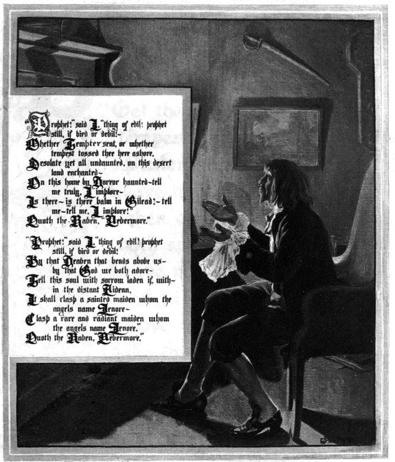 I had now gone so far as the conception of a Raven—the bird of ill omen—monotonously repeating the one word, “Nevermore,” at the conclusion of each stanza, in a poem of melancholy tone, and in length about one hundred lines. Now, never losing sight of the object supremeness, or perfection, at all points, I asked myself—“Of all melancholy topics, what, according to the universal understanding of mankind, is the most melancholy?” Death—was the obvious reply. “And when,” I said, “is this most melancholy of topics most poetical?” From what I have already explained at some length, the answer, here also, is obvious—“When it most closely allies itself to Beauty: the death, then, of a beautiful woman is, unquestionably, the most poetical topic in the world—and equally is it beyond doubt that the lips best suited for such topic are those of a bereaved lover.”