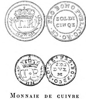 | Édit du Sénat de Gênes.—Réponse de Théodore.—Le roi dans le Nebbio et en Balagne.—Tribulations de Costa.—Frappe de la monnaie. | ||
