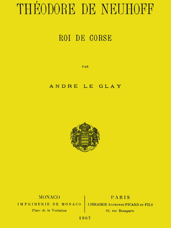 Un livre publié à La Haye en 1738, c'est-à-dire deux ans après le débarquement du baron de Neuhoff en Corse, sous le titre: Histoire des révolutions de l'île de Corse et de l'élévation de Théodore Ier sur le trône de cet État, tirée des mémoires tant secrets que publics, contient des détails dont j'ai pu contrôler la véracité au moyen des rapports français et génois. L'ouvrage de Jaussin, apothicaire de l'armée française d'expédition, intitulé: Mémoires historiques militaires et politiques sur les principaux événements arrivés dans l'île et royaume de Corse depuis le commencement de l'année 1738 jusques à la fin de l'année 1741 (Lausanne, 1758), peut être consulté avec fruit, non seulement en ce qui concerne l'expédition française en 1738, mais aussi sur quelques-unes des intrigues de Théodore.