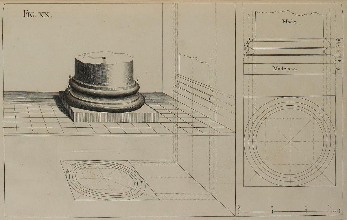 Optica imminutio capitelli Etrusci, | XXI. | The Tuscan Capital in Perspective. |