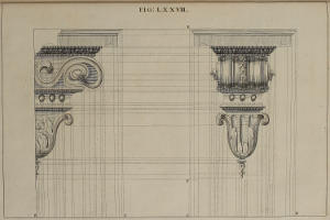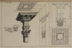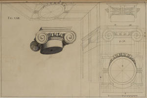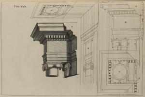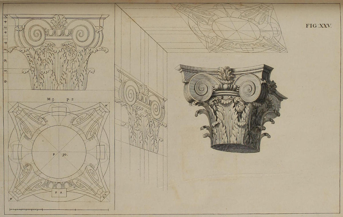 Optica descriptio capitelli Compositi, | XXV. | The Composite Capital in Perspective. |