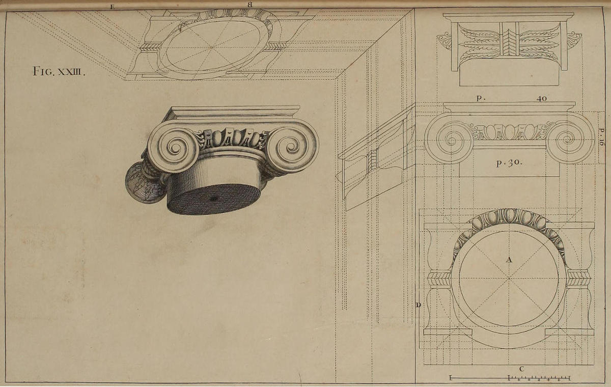 Deformatio capitelli Ionici, | XXIII. | The Ionick Capital in Perspective. |