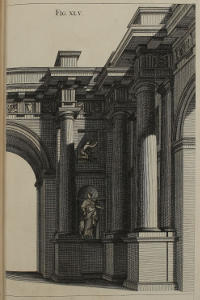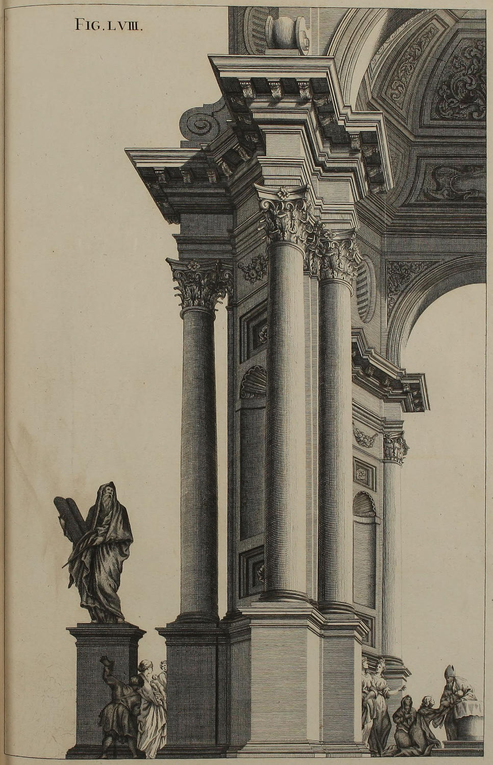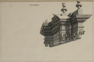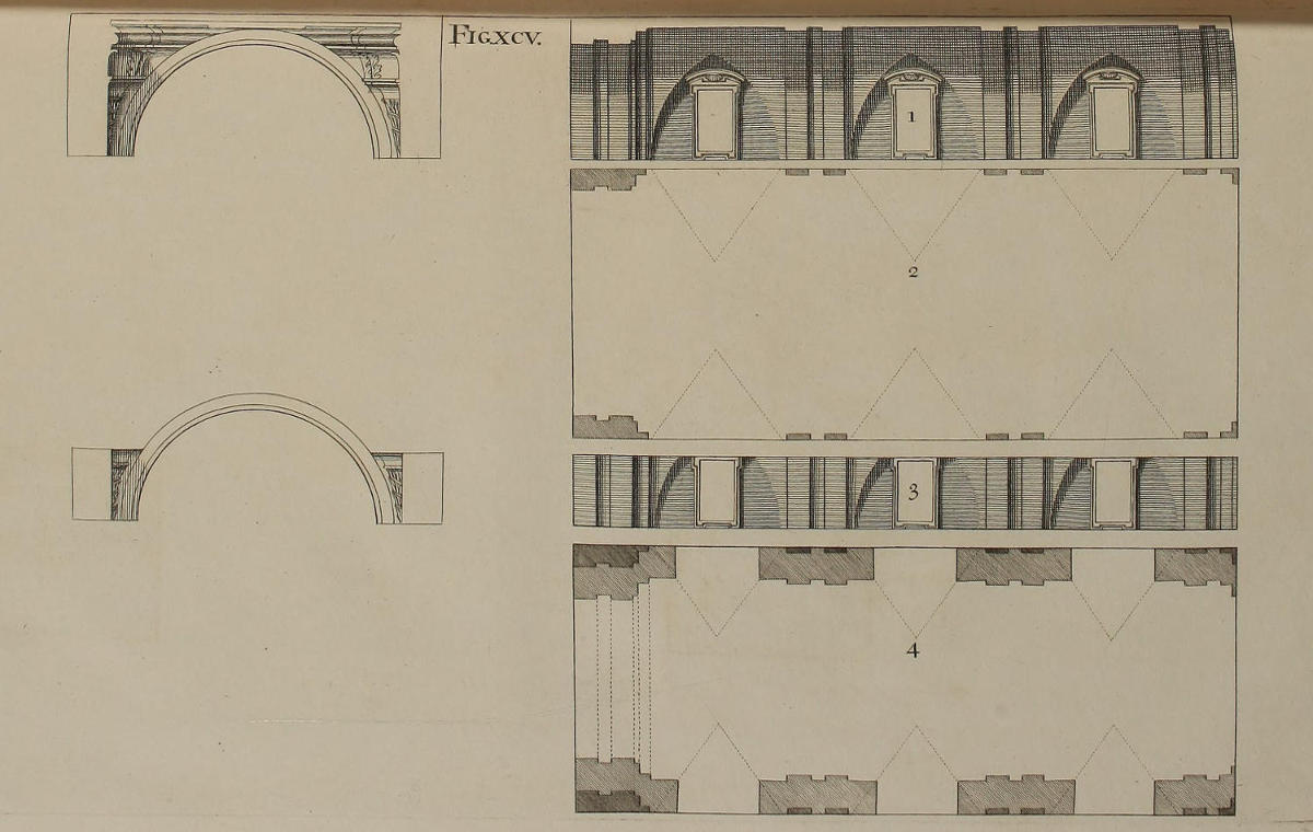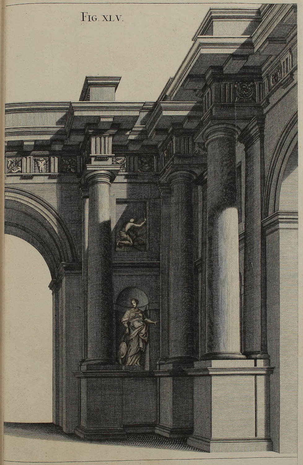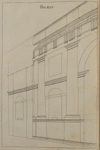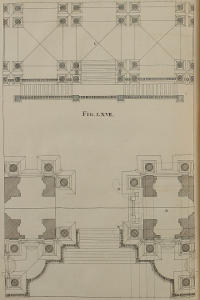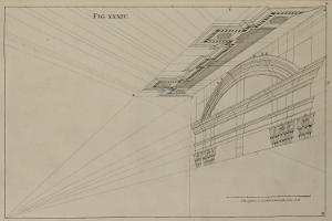 This Author’s great Experience in the Practice of Perspective, having furnish’d him with excellent RULES for Shortning the Work, and Obviating the foremention’d Difficulties; he has here very generously imparted them, and especially the latter, in the Tenth and Eleventh Figures. And tho’ on Perusal of the first three or four Plates, this Method may possibly seem the same that some others have before made use of; yet whoever shall diligently observe and copy the Rules and Examples of the succeeding Figures, must necessarily acknowledge the great Advantage this has in a Perspective-Plan and Upright, clear and distinct; whence the finish’d Piece is deduc’d, without the least Incumbrance of the Work. The Explanations of the Rules here given, are short and instructive; and the Architectonical Designs produc’d to exemplify them, Noble and Magnificent.