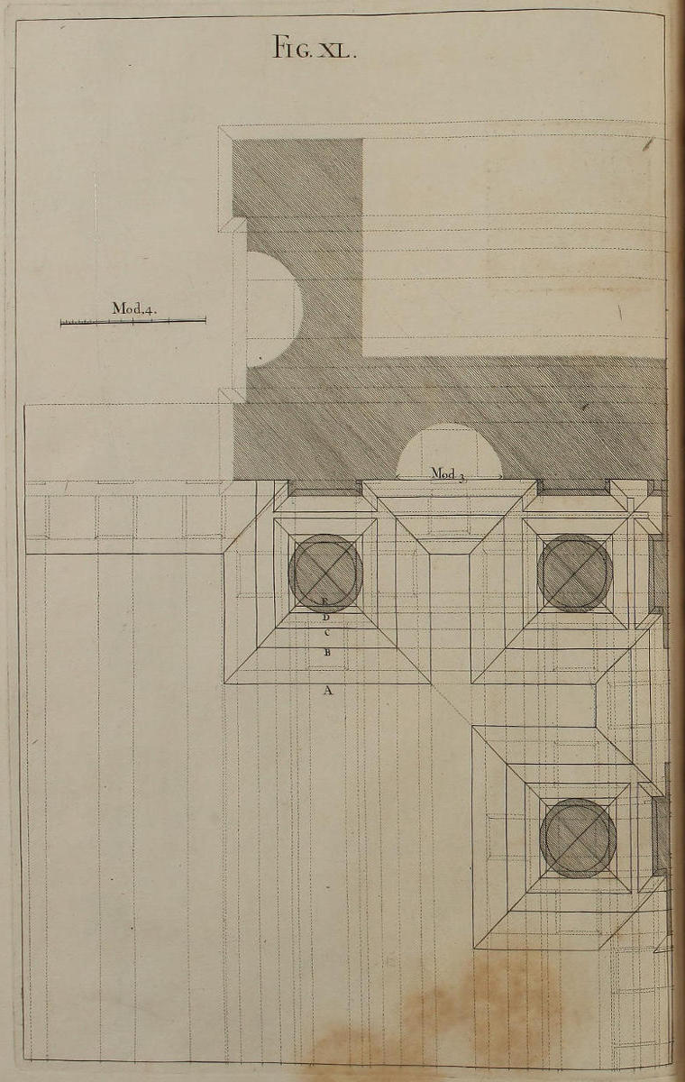 Vestigium geometricum ædificii Ordinis Dorici, | XL. | The Geometrical Plan of a Design of the Dorick Order. |