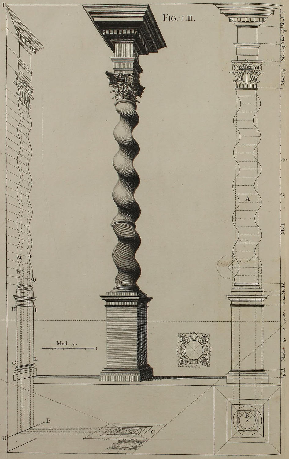Delineatio columnæ spiralis Ordinis Compositi, | LII. | The Description of a wreath’d Column of the Composite Order. |