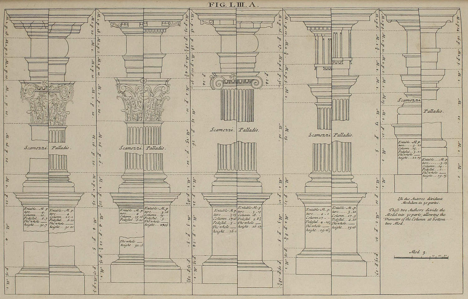 Ordines Architecturæ desumpti ex Palladio & Scamozzio, | LIII. A. | The Orders of Architecture taken from Palladio and Scamozzi. |