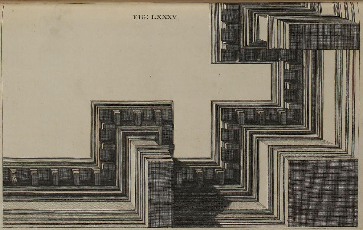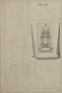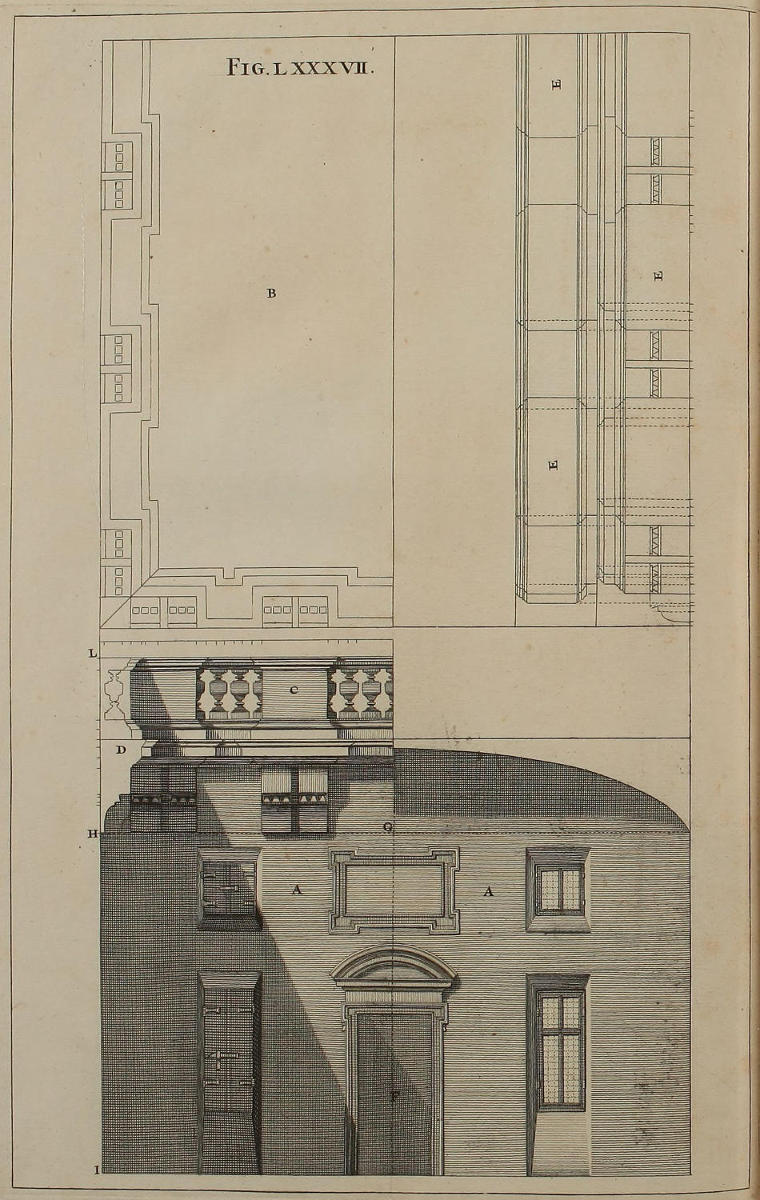 Elevatio geometrica vestigii præcedentis, & secunda præparatio ad figuram septuagesimamprimam, | LXVIII. | The Geometrical Elevation of the foregoing Plan, and second Preparation to the Seventy-first Figure. |