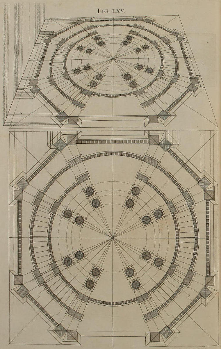 Vestigium ædificii rotundi opticè imminutum, | LXV. | The Plan of a Circular Work in Perspective. |