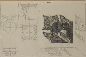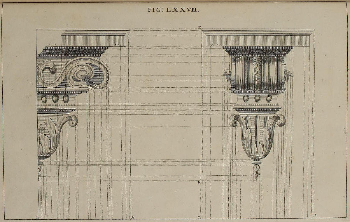 Capitella Corinthia horizontaliter contracta, | LXXXIII. | A Corinthian Capital in horizontal Perspective. |