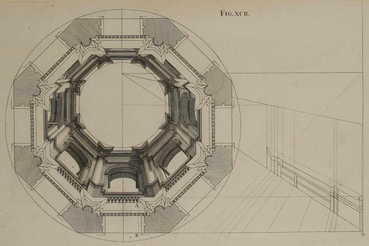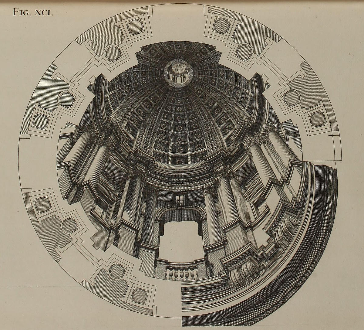 Horizontalis projectio tholi, | XC. | A Cupola in horizontal Perspective. |