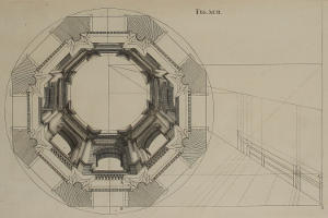 Projectio ædificii rotundi, | LXVI. | A Circular Design in Perspective. |