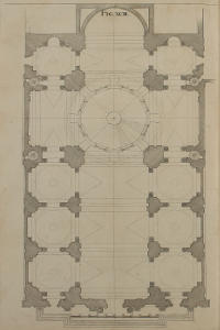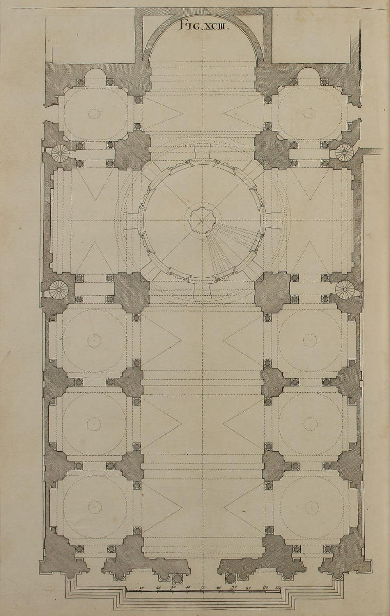 Vestigium templi Ludovisiani S. Ignatii almæ urbis, | XCIII. | The Geometrical Plan of S. Ignatius’s Church at Rome. |