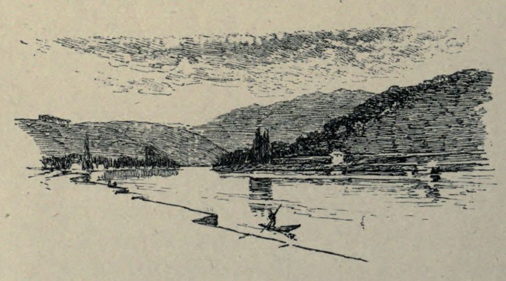 We left the champions of the regatta toasting each other at the next table, and went into the[27] salon to study a chapter of our sentimental guide-book in preparation for the first day’s ride. But an American was there before us, and began, instead, a talk about Wall Street and business, Blaine and torchlight processions. As Americans do not travel to see Americans, we retired to our room.