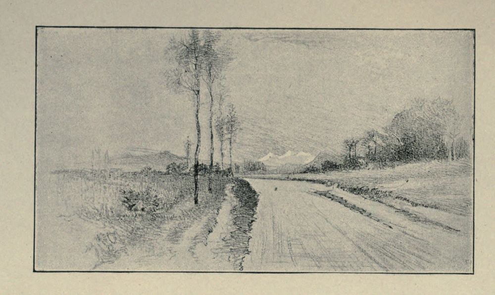 Because it was not possible to follow you in many ways, we have spared no effort to be faithful in others. We left out not one city which you visited, and it was a pleasure to learn that the world is still as beautiful as you found it, though to-day most men of culture care so little for what is about them, they would have us believe all beauty belongs to the past. However, it will be gratifying to you, who did not despise fame during your lifetime, to know that you are one of the men of that past who have not wholly died.—And again, dear Sir, as it was your invariable custom to borrow the thoughts and words of any writer who particularly pleased you—a custom your enemies have made the most of—we have not hesitated to use any pictures of other men, or any descriptions and expressions in your works, that seemed appropriate to the record of our journey. More honest than you, Sir, we have given credit to the artists, that their names may enhance the value of our modest offering. But as you will recognise your own words without our pointing them out, we have not even put them into quotation marks, an omission which you of all men can best appreciate.