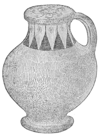 This is an imitation of porcelain and shows very well the unevenness of the modern glaze. Such jars were used to contain the internal organs of the dead and were placed in the tomb beside the mummy.