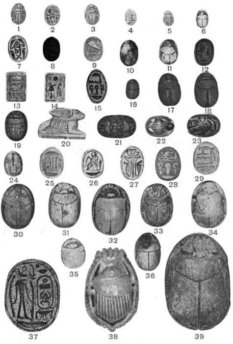 Presently one of these bystanders said: “Does not a monkey appear in Plate 72, Vol. I., of the ‘Archæological Survey of Nubia?’” There was a dead silence, and 148many inquiring eyes were turned upon me. I said, “That is so.” Then another man said, “It is described as a steatite monkey holding a kohl pot, for I remember reading it with great interest. And the sacred eye is shown in Plate 79, Vol. I.” Now the interest became intense, and smiles began to appear on the faces of the bystanders. It was all true. The small scarab is shown in the second volume, and the large scarab is illustrated in the second report of the “Archæological Survey of Nubia.”