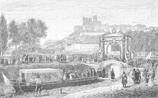 Le 19 mai suivant eut lieu l'inauguration. Monseigneur d'Anglure, archevêque de Toulouse, les évêques de la région prêtèrent leurs concours à la pompe de la cérémonie. Des barques, en grand nombre, chargées pour la foire de Beaucaire, attendaient l'ordre du départ.