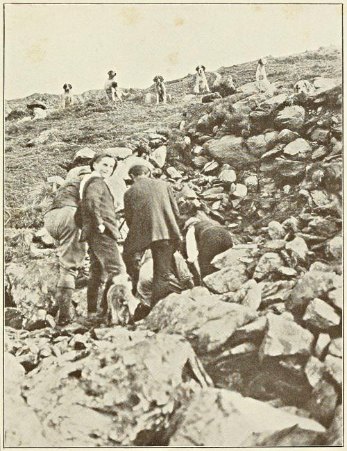 Some of the quarry “rubbish heaps” are composed of “big stuff” in the way of rocks, and are dangerous to open up, as the excavating process causes the upper material to unexpectedly rush in. In addition to shutting off the terriers, such a rush may easily bury or severely injure the men who are at work. I have seen one or two very narrow escapes of this kind, and they are decidedly unpleasant experiences.