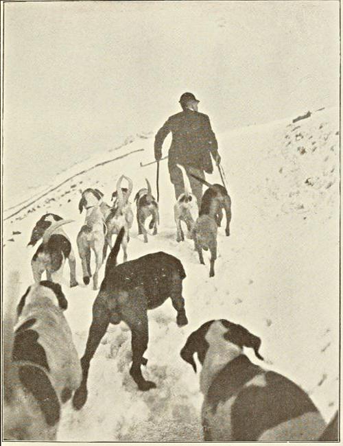 A white frost is often bad for scent, and almost always so if the sun gets out at all warm. In the afternoon, should the ground harden again, hounds may be able to run quite well. I have noticed that towards evening, under varied conditions of weather, scent is often better than earlier in the day. Snow, if damp, and not too deep, often carries a good scent. In deep, soft snow, hounds can soon account for their fox if they get away close to him, as their greater length of leg gives them the advantage in such “going.”