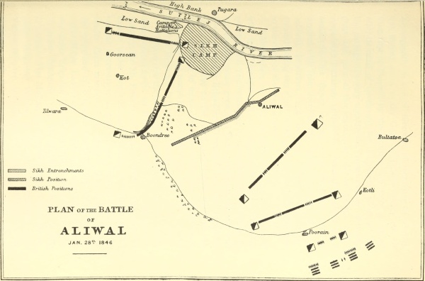 [246] I visited last year at Ely, Mr. B. Genn, late of the 15th Hussars, who had served under him in India in 1846, and who had fired over his grave. As soon as I had opened the door, a fine engraving of Sir Harry greeted me. It had been bought at a sale. The old veteran spoke of his commander always as the “dear old man.” When I asked him if he thought him a good General, he fired up quickly, “Why, think of the battle of Aliwal! Not a mistake anywhere.”