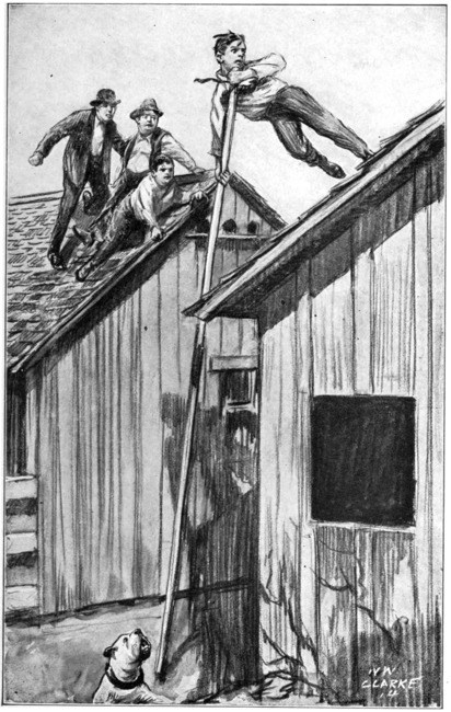 I understood then and dived for the stairway. Mark gave another jerk on the lasso, sprawling Collins over, and came after me. Up we went, making a clatter like a runaway team crossing a wooden bridge. We were pretty nearly at the top before Collins got loose and reached the bottom.