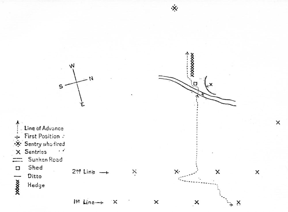 Recognising the immediate necessity for action, and the danger of leaving the flank of the unit on our left exposed, I was compelled to act on my own initiative, being the only other officer in the company.{17} The difficulties of commanding a full company in action, without any other officers in the company, are great; but when that action takes place in the dark, over unknown ground, it becomes mere luck if things go well.