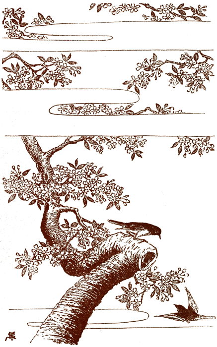 Within were sunshine, birds, flowers, gentle words, and soft caressing smiles. Without, a cruel, cold world waiting to snuff out the warmth and sunshine of her nature. All this was taught to Sado-ko by the old Empress Dowager, who in her old age had become selfish. This was the way in which she sought to keep with her the heart and soul of the companion of her old age,—the child she loved. Even after she had passed away, she knew that the thoughts of the princess would remain with her though her soul should have flown. Thus she paved the way for a companionship in death as in life, as was the custom with her ancient ancestors.