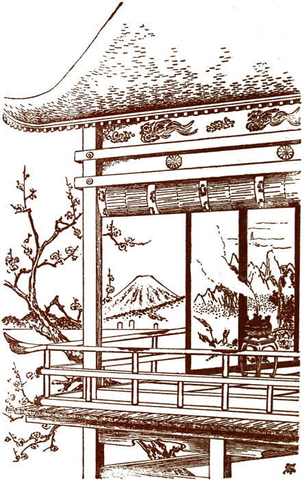 The palace itself was of simple and old-fashioned architecture. It faced to the east, and its towers and turrets were of gold. Its shojis were large and so clear that the sunlight pierced through them, flooding the interior. The floors were covered with soft sweet tatamis—rush mats; the decorations on the screens and panels of the sliding doors were subdued and refined though works of art.