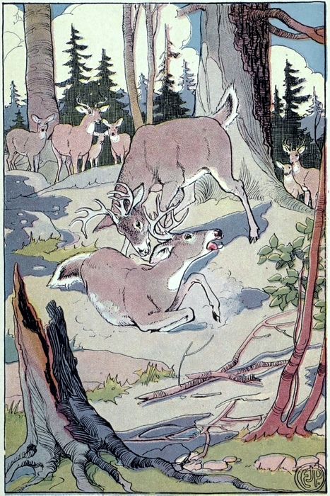 The blood of the older ones was warmed by the sight. Father Buck recalled the day when he fought Black Buck for leadership, and he was proud of his son now fighting over again his own battles. Even Mother Deer, tenderhearted as she was, admired and applauded White Tail. She knew the battle once decided in his favor would never have to be repeated.
