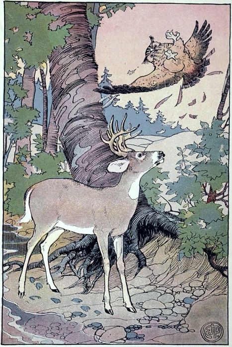 But his antlers were his pride. They spread out fan-shape on his head, crowning it with a glory that made Mother Deer supremely happy. At times it seemed as if the antlers were too heavy for the head and neck, but White Tail carried them easily, and when he shook them in sport or anger any one could see they were just fitted to him.