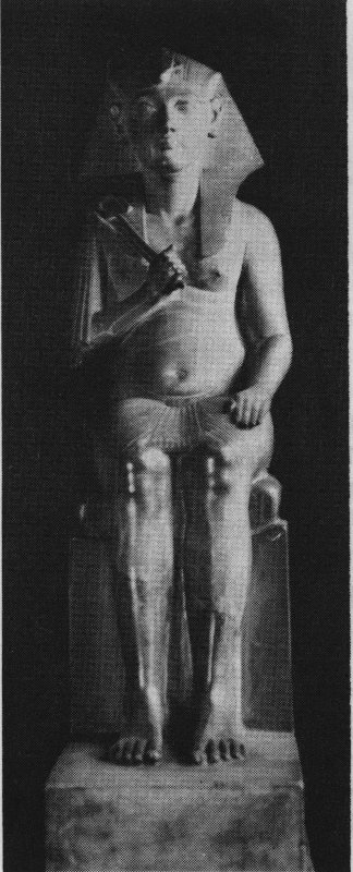 Seated Figure of Akhenaton. The young king is depicted in a conventional pose at Thebes before he moved his capital to Akhetaton.